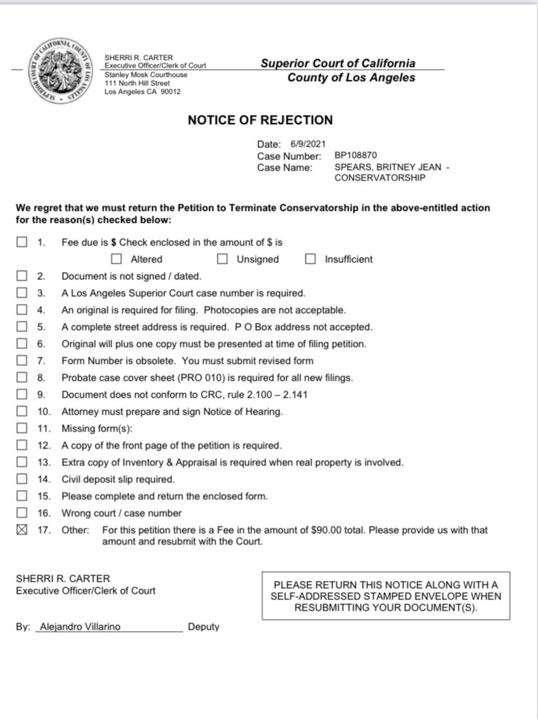 Britney Law Army On Twitter Someone Filed A Petition To Terminate Britney Spears Conservatorship Unfortunately It Has Been Rejected Because Whoever Filed It Forgot To Pay The Filing Fee Freebritney Https T Co Hx1zyn9jdi